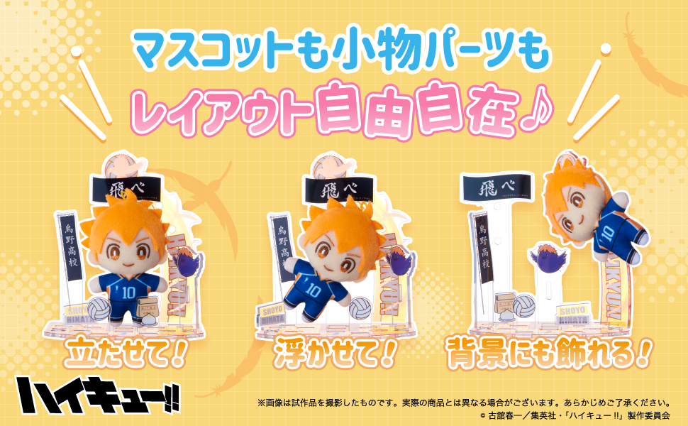 複数のキャラクターを同じ台に飾ったり、アクリルパーツを組み合わせて楽しむこともできます。