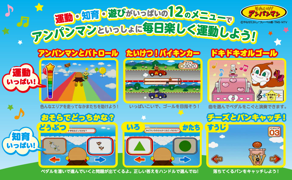 ペダルを漕いでアンパンマンとパトロールしたり、ばいきんまんと競争しよう!